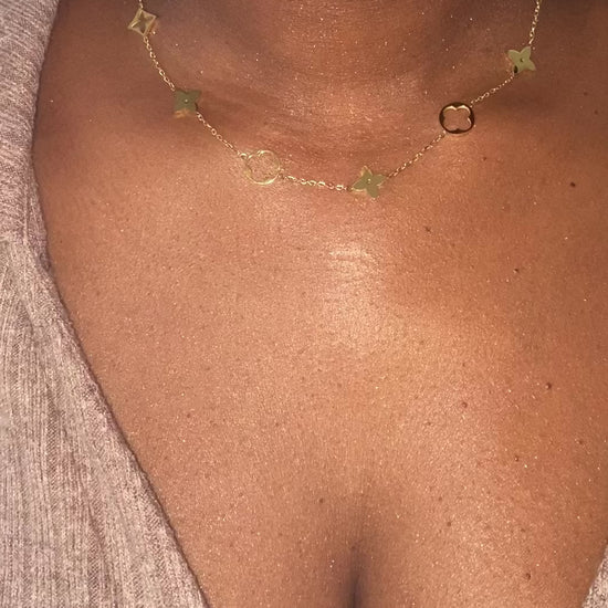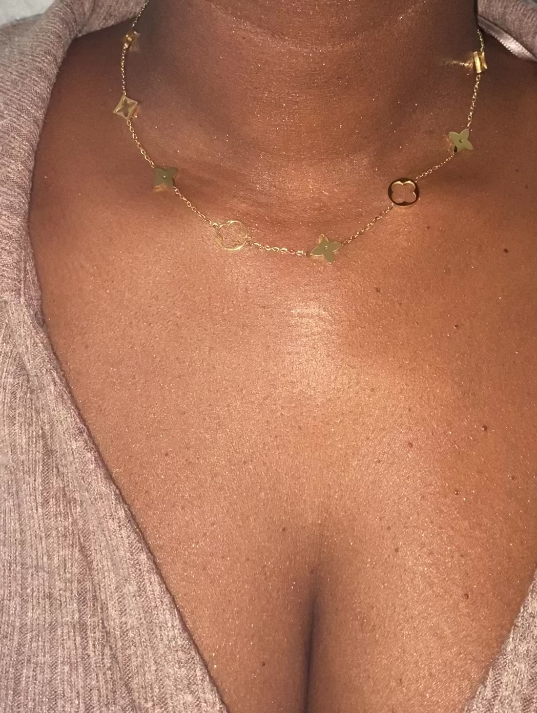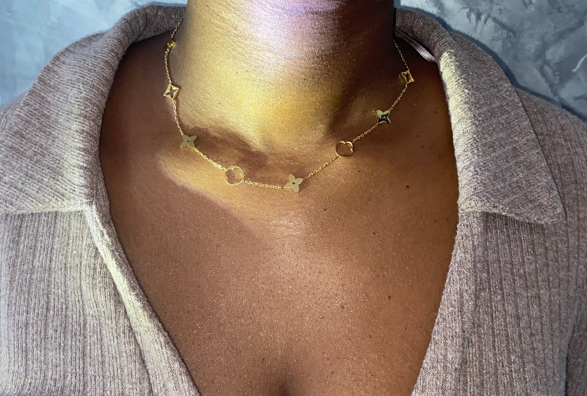 Collier doré en acier inoxydable, orné de petits losanges délicats.
